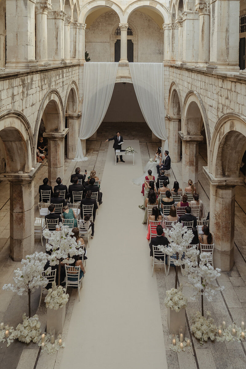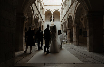 This elegant Renaissance wedding unfolded within Dubrovnik's ancient walled city. The intimate ceremony at the magnificent 16th-century Sponza Palace created pure magic. An unimaginable dream became reality in this historic Croatian jewel.